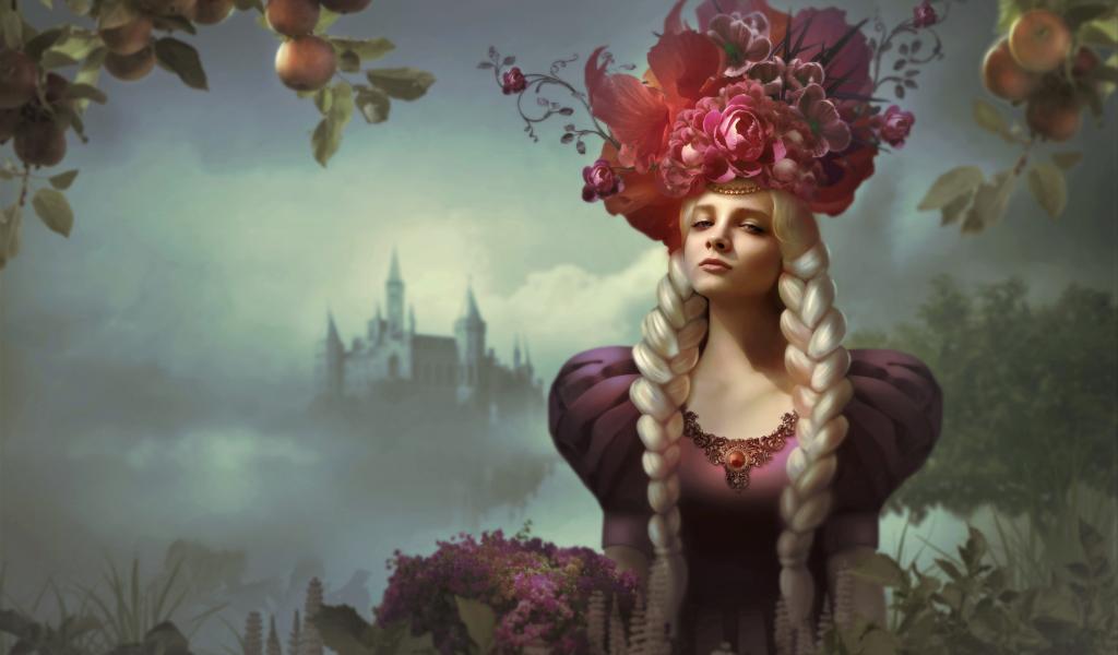 Wallpaper Beautiful girl with long hair and flowers on her head, fantasy