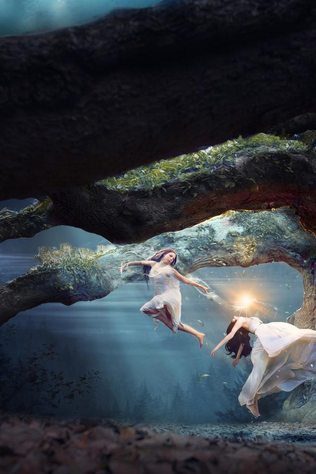 Wallpaper Two fantastic girls are floating in the air