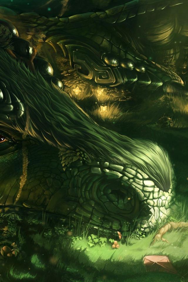 Wallpaper Big dragon and little girl, fantasy