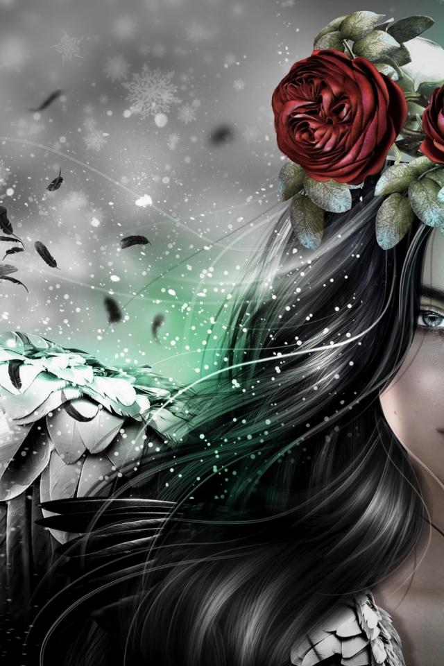 Wallpaper Girl black angel with a wreath on his head, fantasy