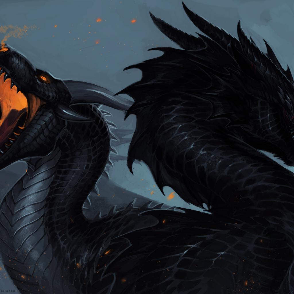 Wallpaper Two black dragons, fantasy