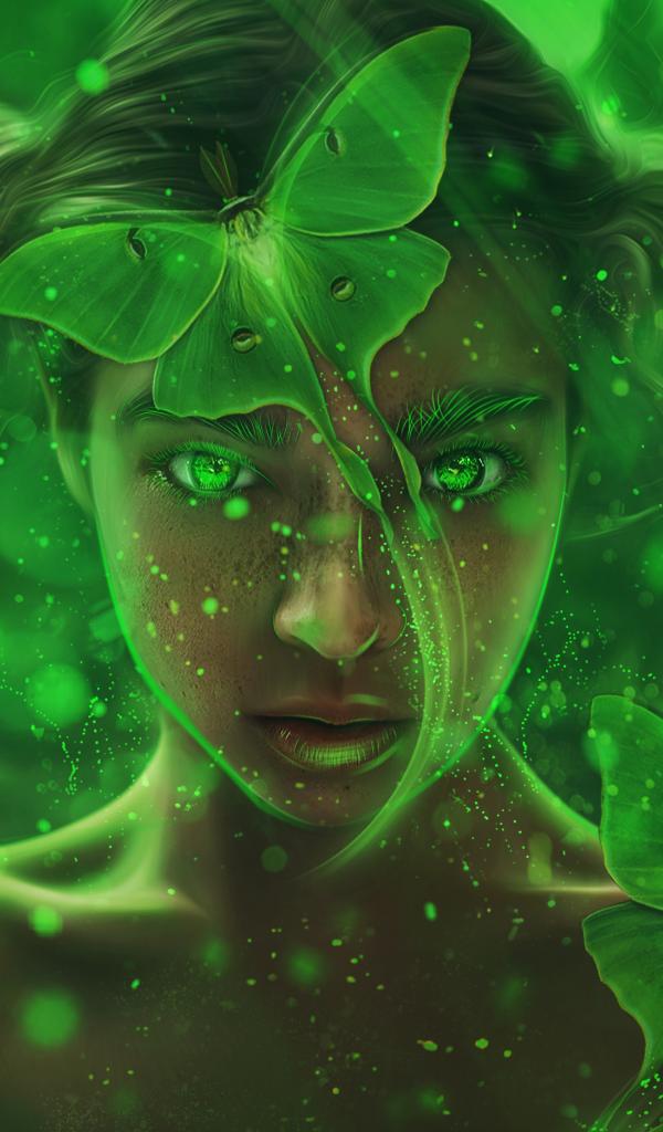 Wallpaper Fantastic girl with green butterflies