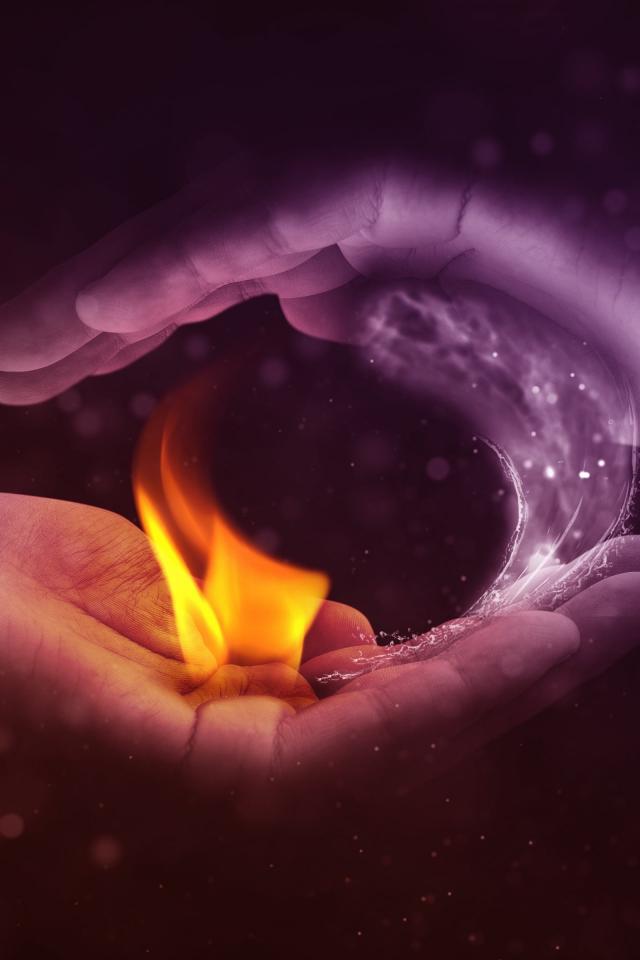 Wallpaper Fire and water in the palms