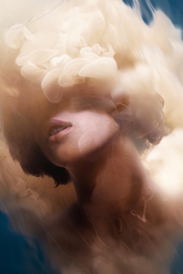 Wallpaper The girl`s face in the smoke on a blue background, illusion