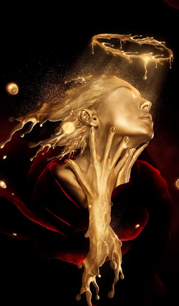 » Wallpaper The face of a girl of gold in a red rose, fantasy