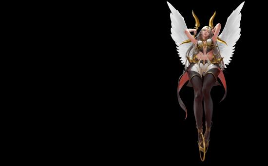 Wallpaper Angelic Warrior Girl on a Fantasy Black Background