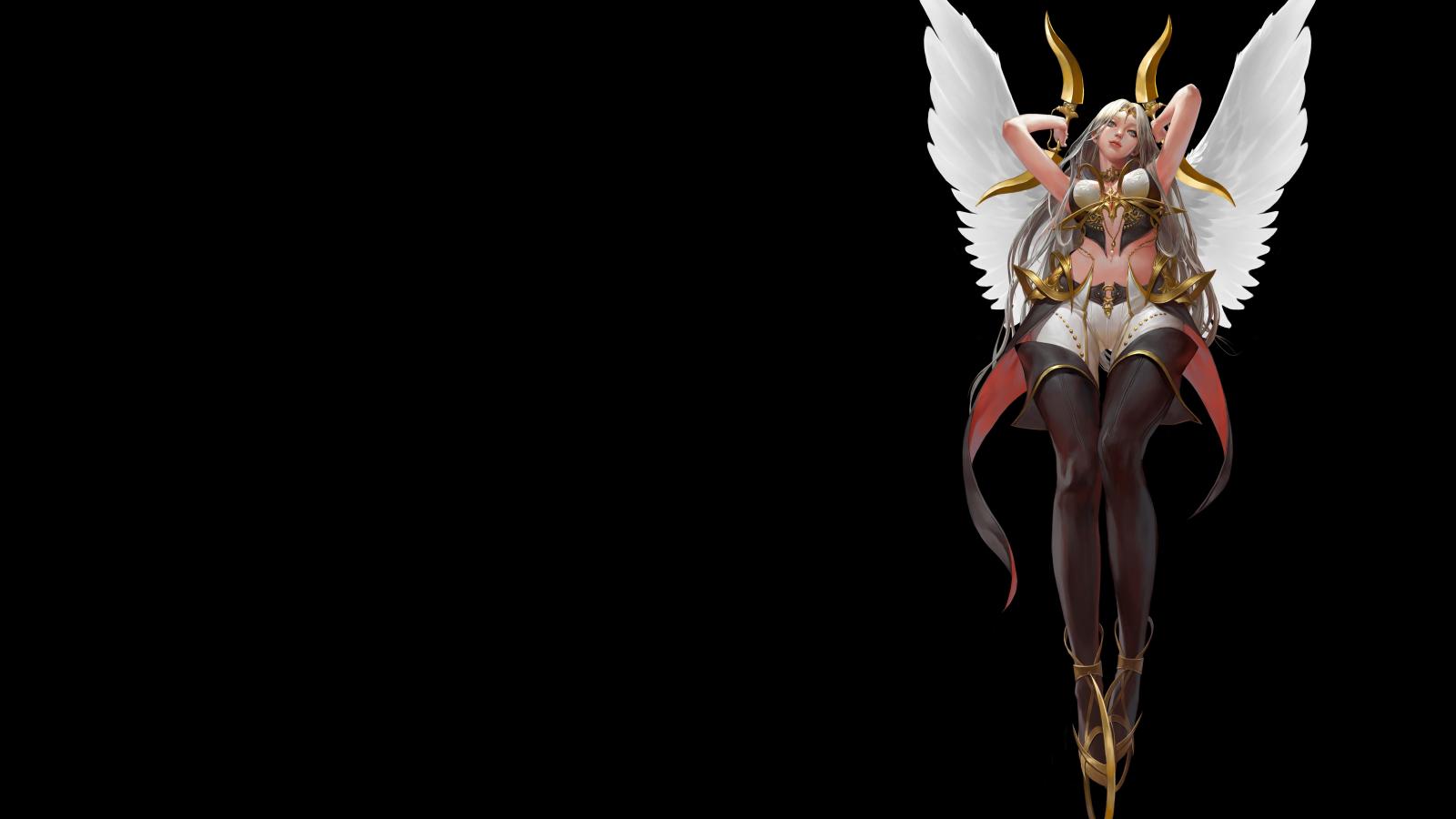 Wallpaper Angelic Warrior Girl on a Fantasy Black Background