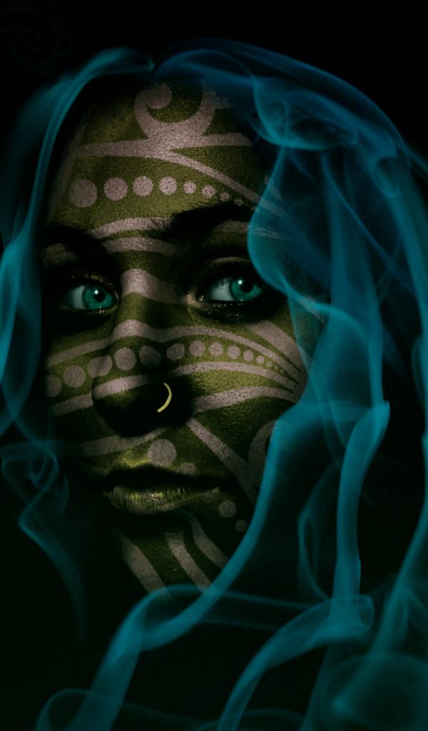 Wallpaper Fantastic green-eyed girl with blue smoke hair