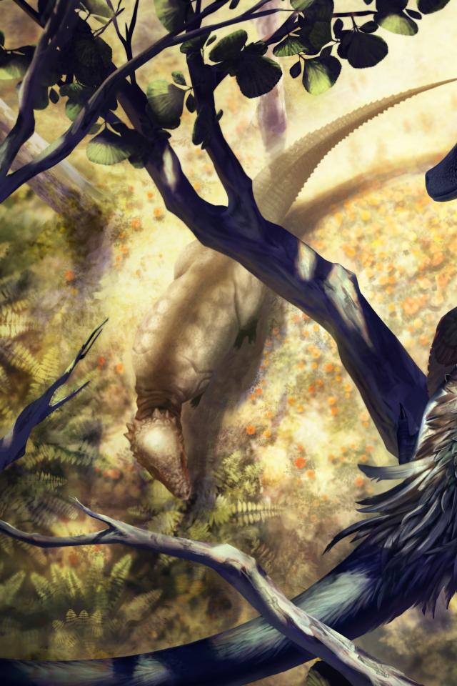 Wallpaper Fantastic dragon sitting on a branch