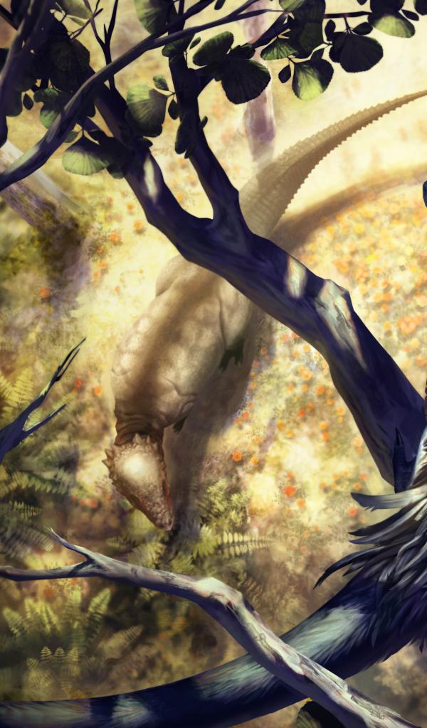 Wallpaper Fantastic dragon sitting on a branch