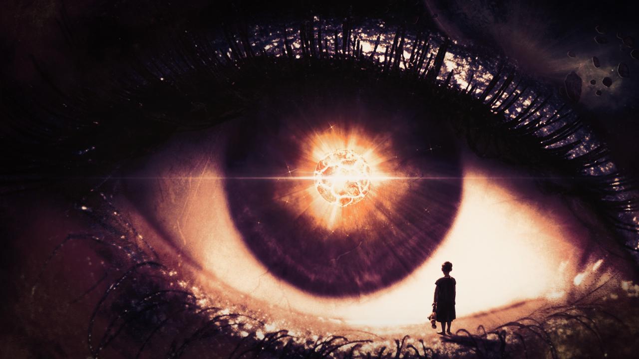 Wallpaper Little girl stands on the open fantastic eye