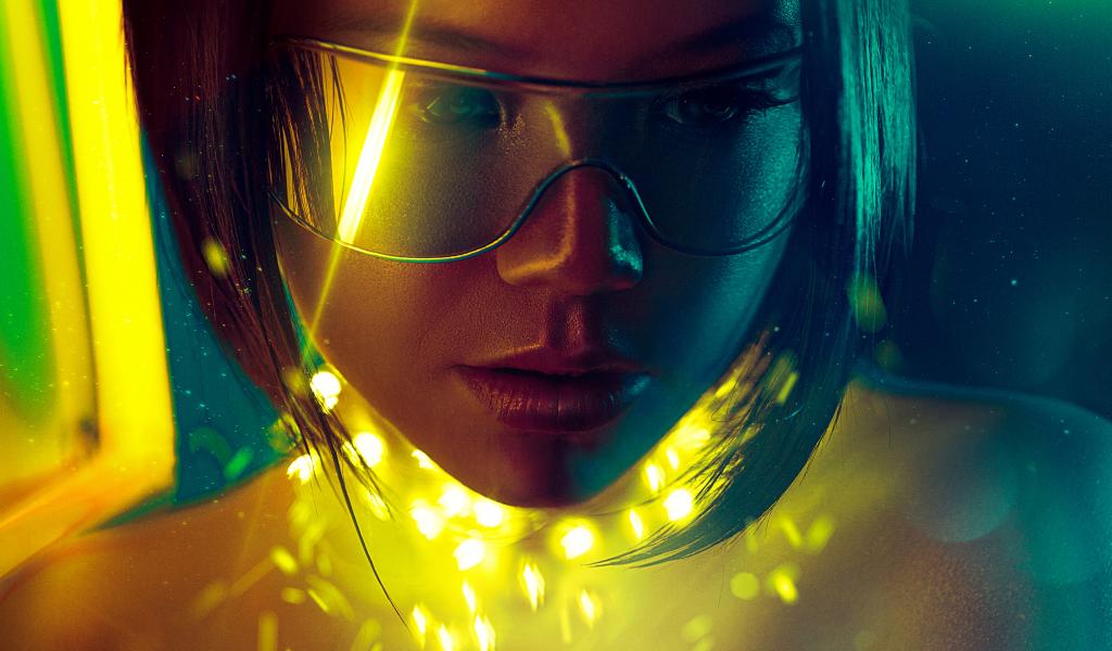 Wallpaper Cyborg girl with fantasy glasses