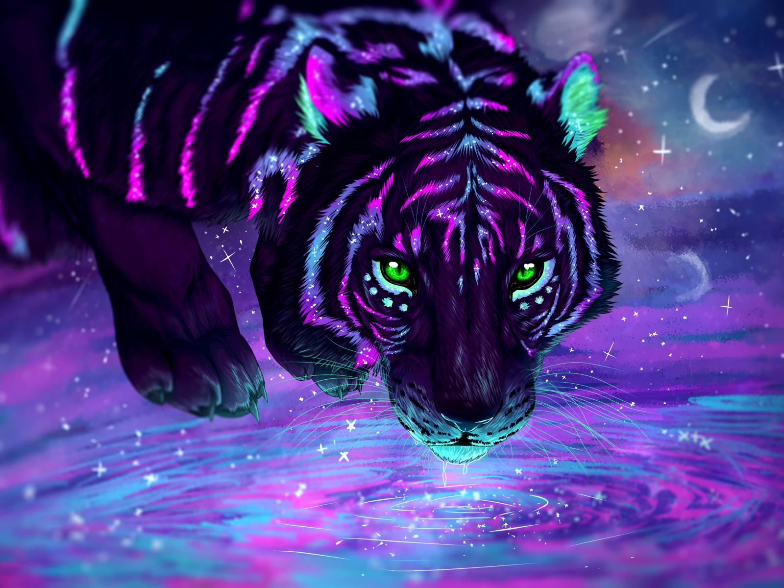 » Wallpaper Fantastic neon tiger drinks water
