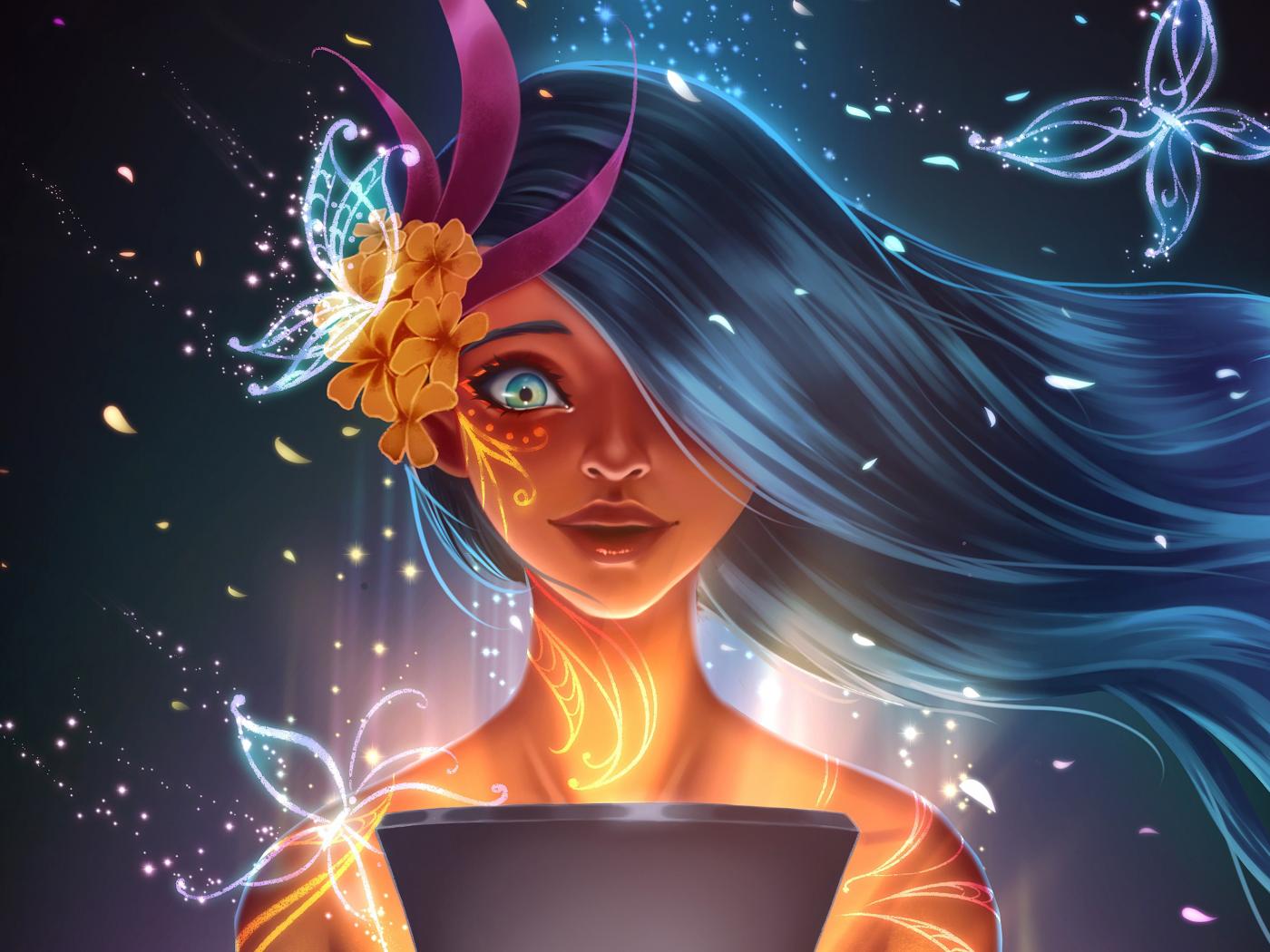 Wallpaper Fantastic girl with patterns on the body