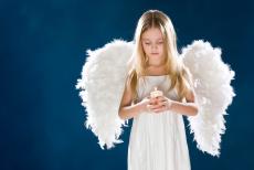 Wallpaper Girl with angel wings sits on a stone in the clouds