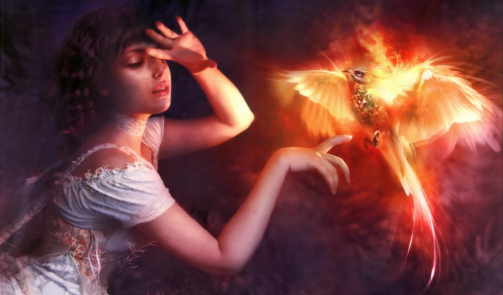 Wallpaper Beautiful girl with a mythical phoenix bird