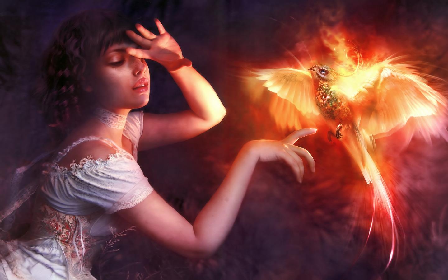 Wallpaper Beautiful girl with a mythical phoenix bird