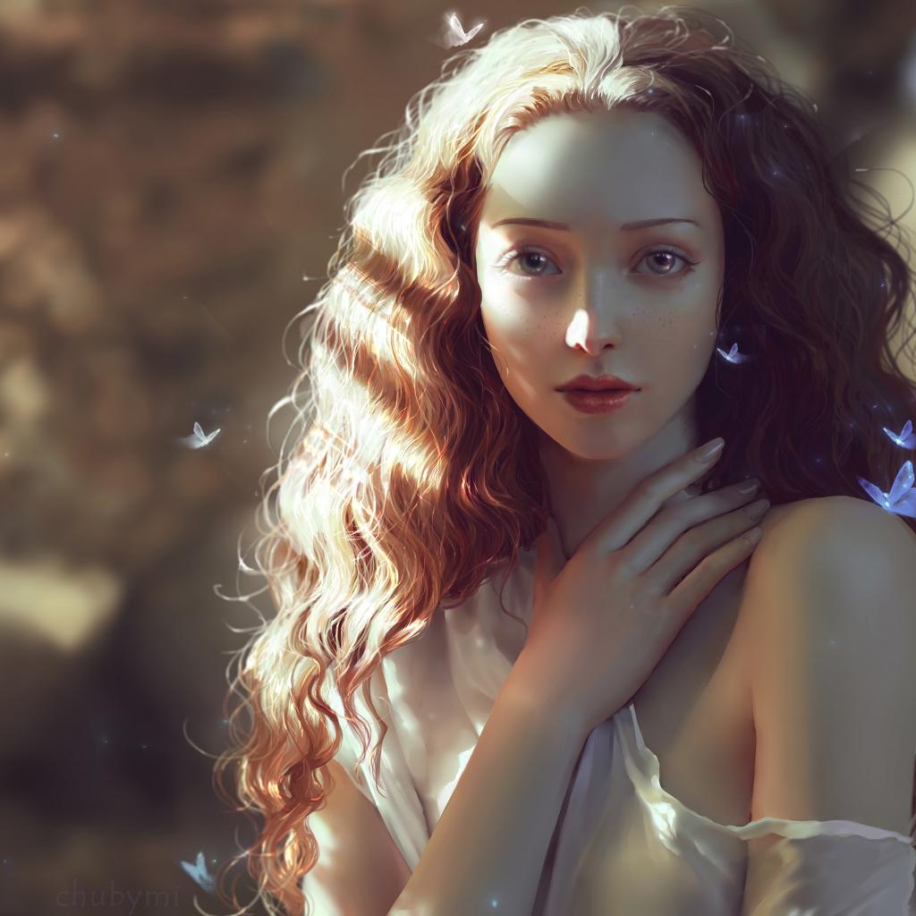 Wallpaper Fantastic beautiful girl with neon butterflies.