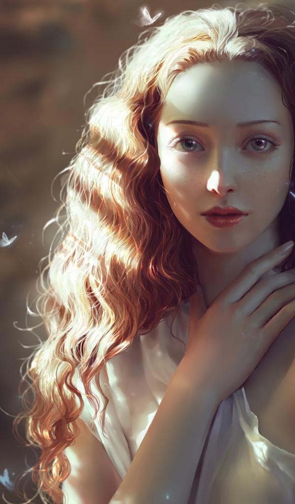 Wallpaper Fantastic beautiful girl with neon butterflies.