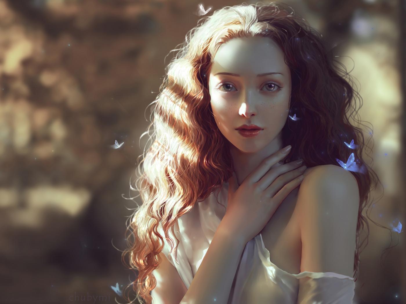 Wallpaper Fantastic beautiful girl with neon butterflies.