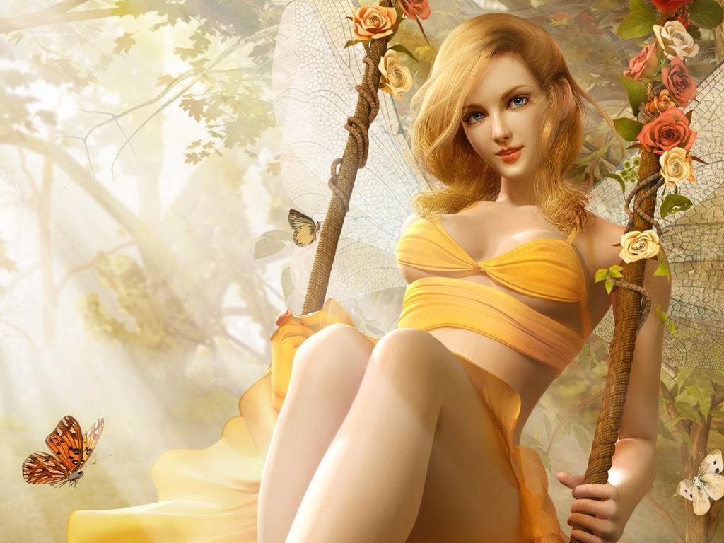 Wallpaper Beautiful elf girl riding a swing