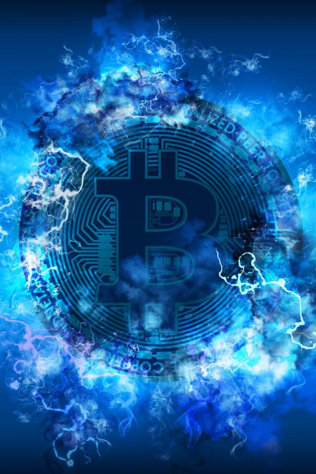 Wallpaper Coin bitcoin with lightning bolts on a blue background