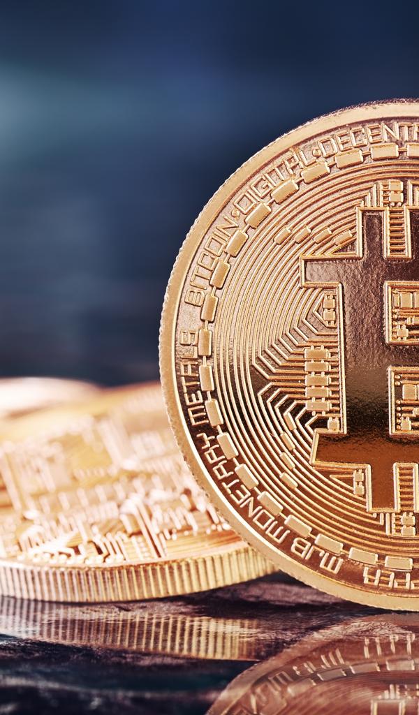 Wallpaper Coin bitcoin with lightning bolts on a blue background