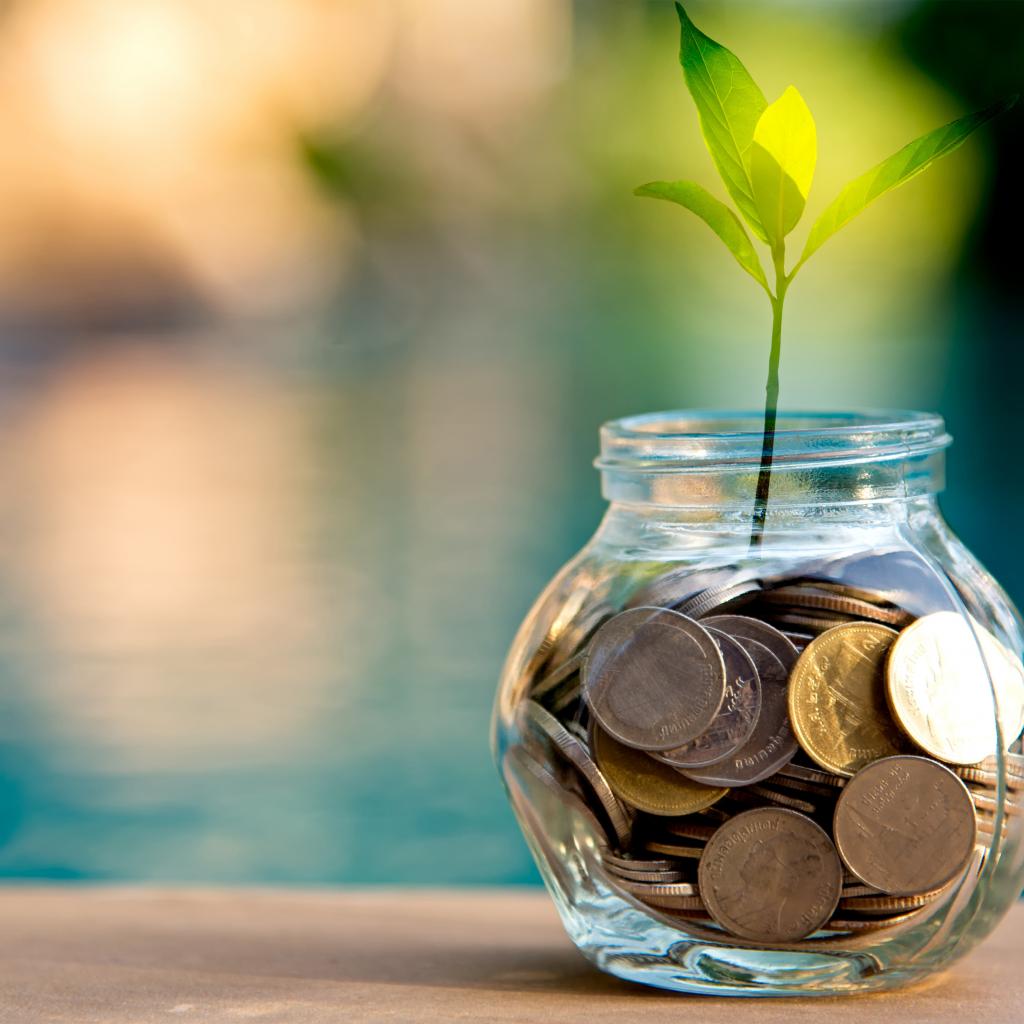 Wallpaper Green sprout germinates from the piggy bank