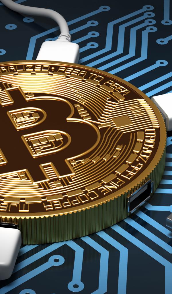 Wallpaper USB cable connected to bitcoin coin