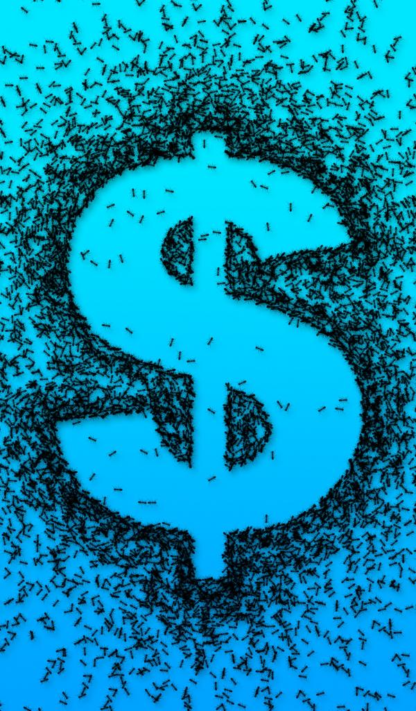 Wallpaper Dollar sign with black ants on a blue background