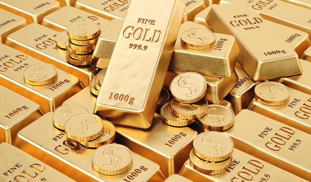 Wallpaper Lots of gold bars of gold and coins