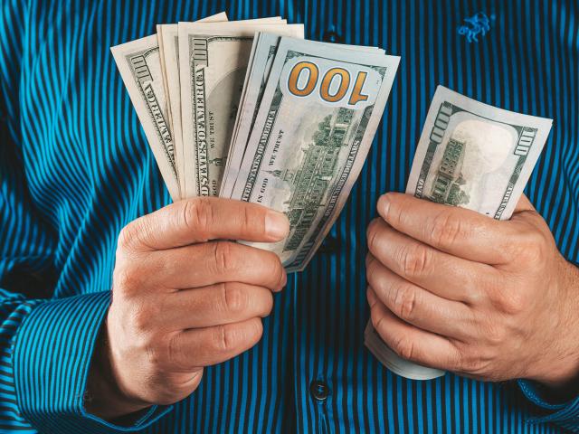 Wallpaper Man counts one hundred dollar bills
