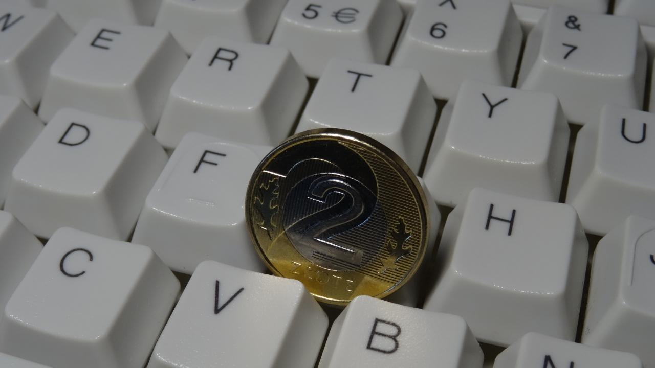 Wallpaper Two zloty coin lies on the keyboard