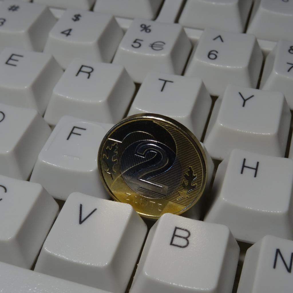 Wallpaper Two zloty coin lies on the keyboard