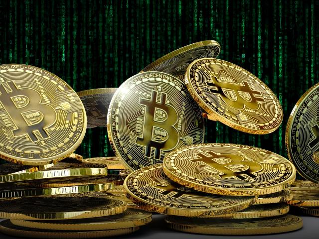 Wallpaper Lot of gold bitcoin coins close up