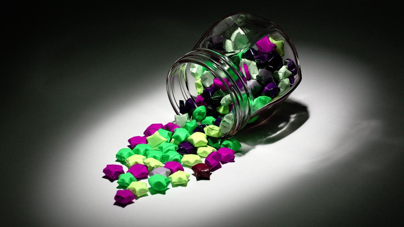 Wallpaper Chocolates in colorful wrappers spilled from a jar