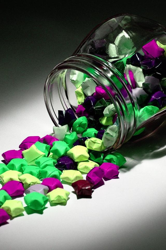 Wallpaper Chocolates in colorful wrappers spilled from a jar