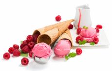 Wallpaper Raspberry ice cream in waffle cones on a white background