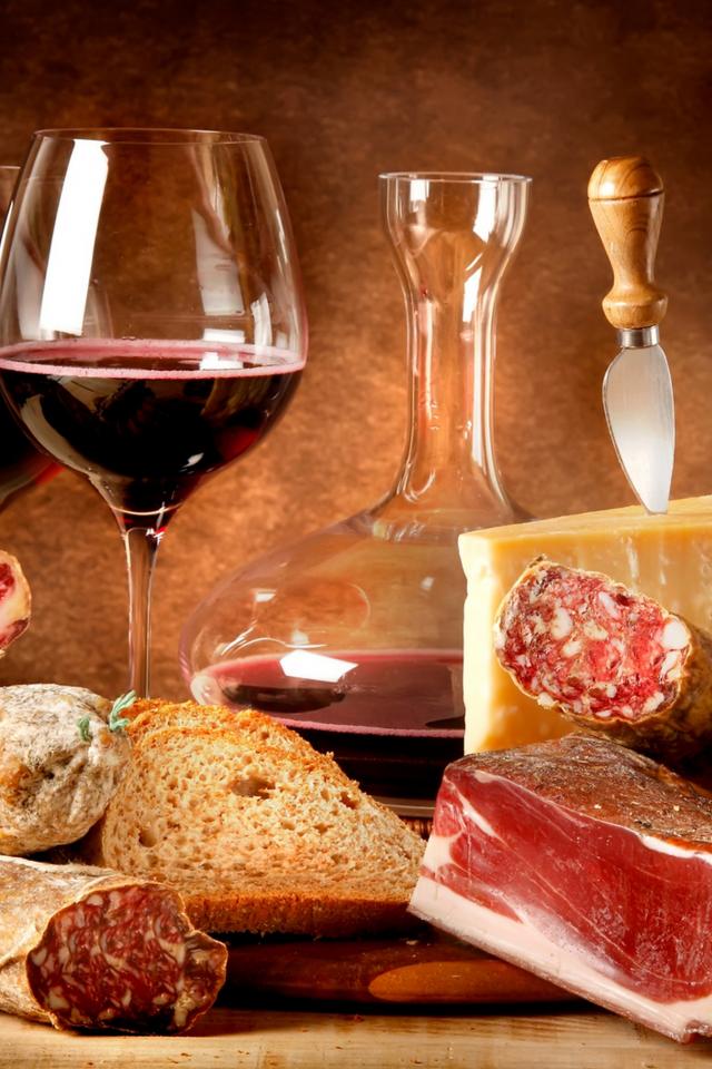 Wallpaper Red wine and meat products on the table