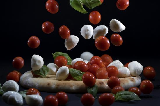 Wallpaper Tomatoes and mozzarella on pizza falls