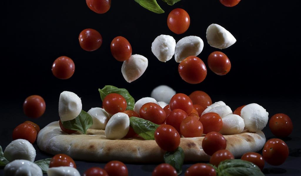 Wallpaper Tomatoes and mozzarella on pizza falls