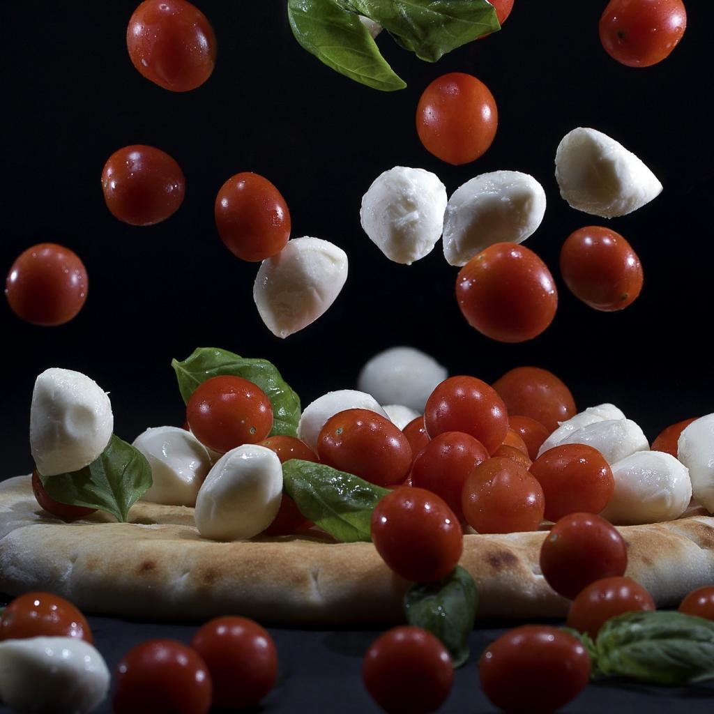 Wallpaper Tomatoes and mozzarella on pizza falls