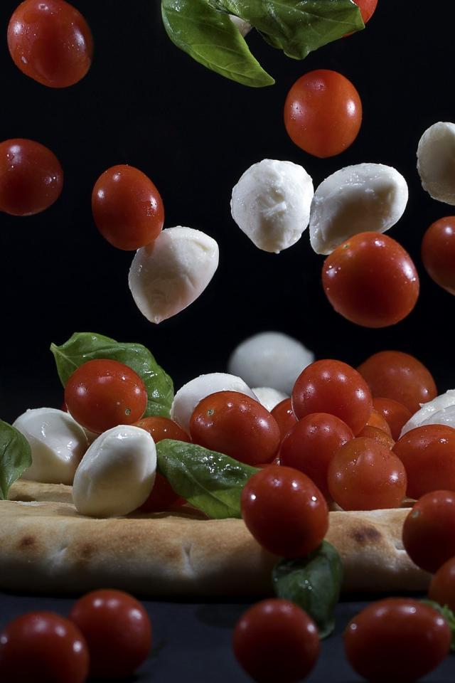 Wallpaper Tomatoes and mozzarella on pizza falls