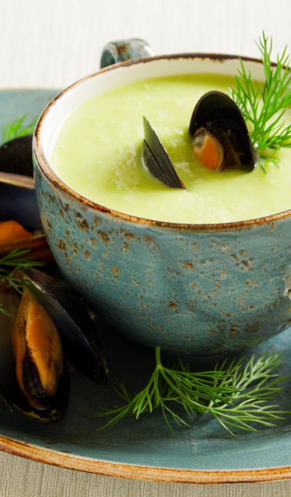» Wallpaper Soup of mussels in a soup cup