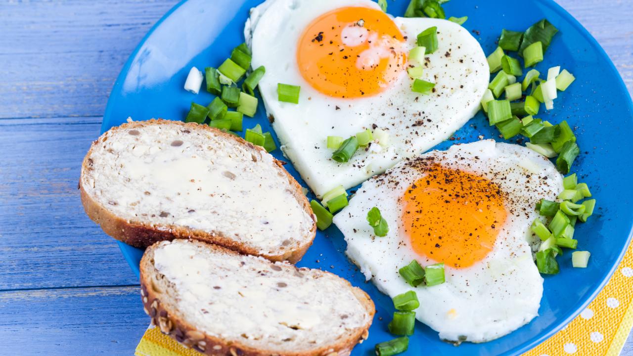 Wallpaper Scrambled eggs in the shape of heart and breakfast sandwiches