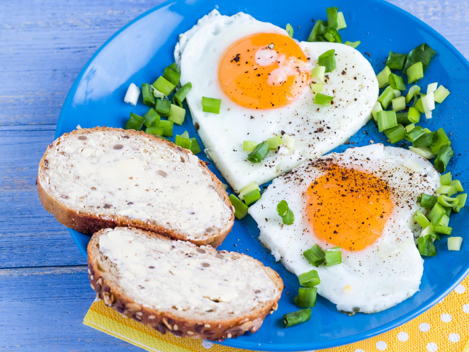 Wallpaper Scrambled eggs in the shape of heart and breakfast sandwiches