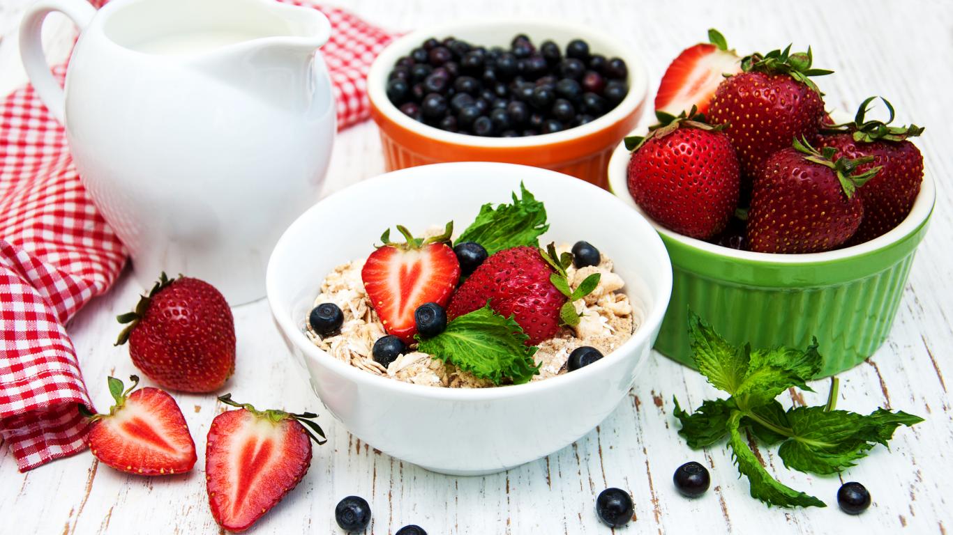 Wallpaper Oatmeal and fresh strawberries for breakfast