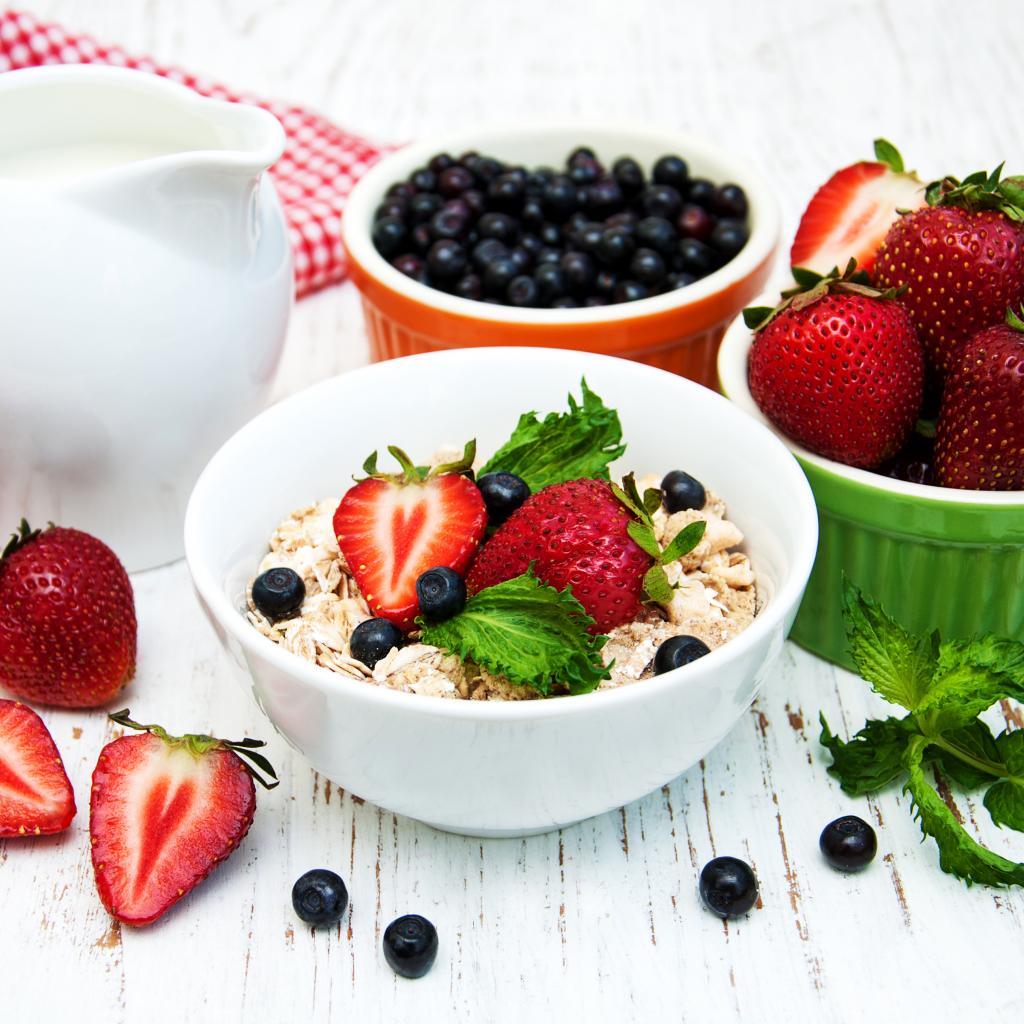 Wallpaper Oatmeal and fresh strawberries for breakfast