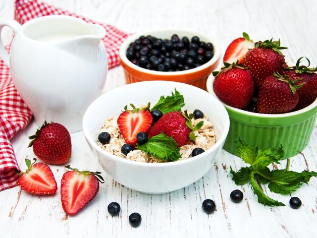 Wallpaper Oatmeal and fresh strawberries for breakfast