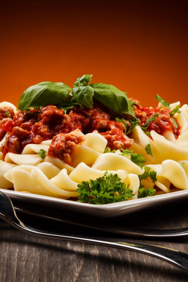 Wallpaper Appetizing pasta with sauce and basil